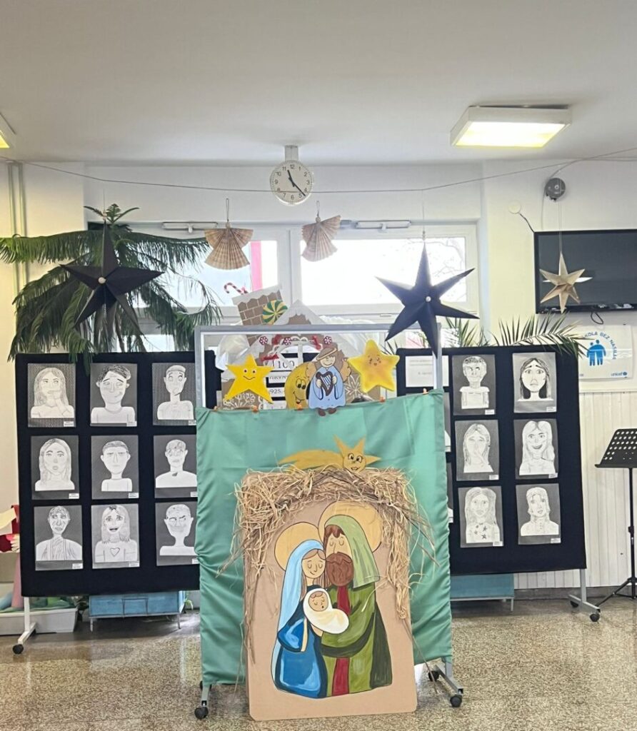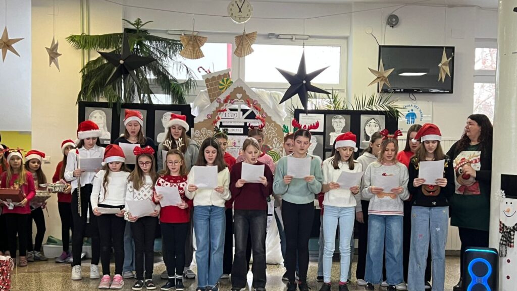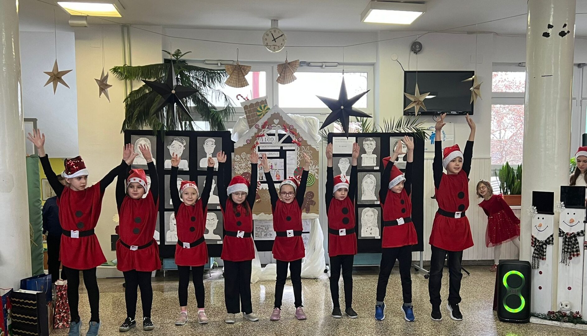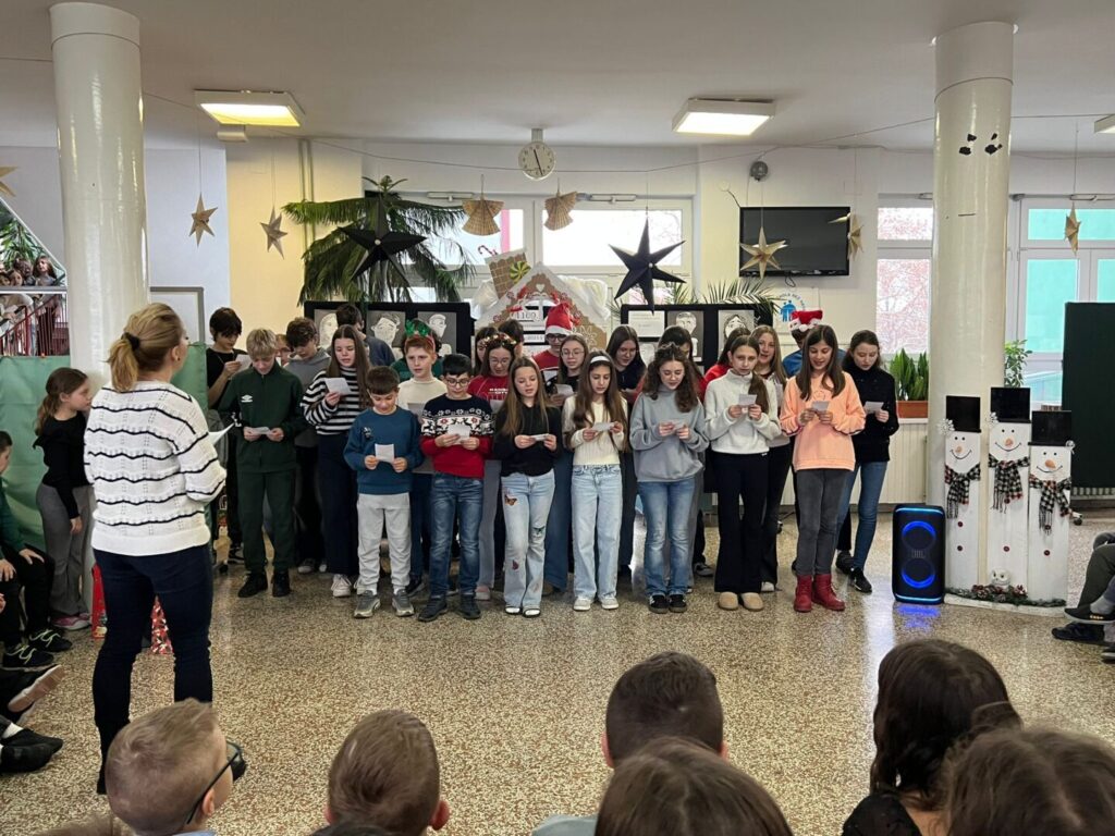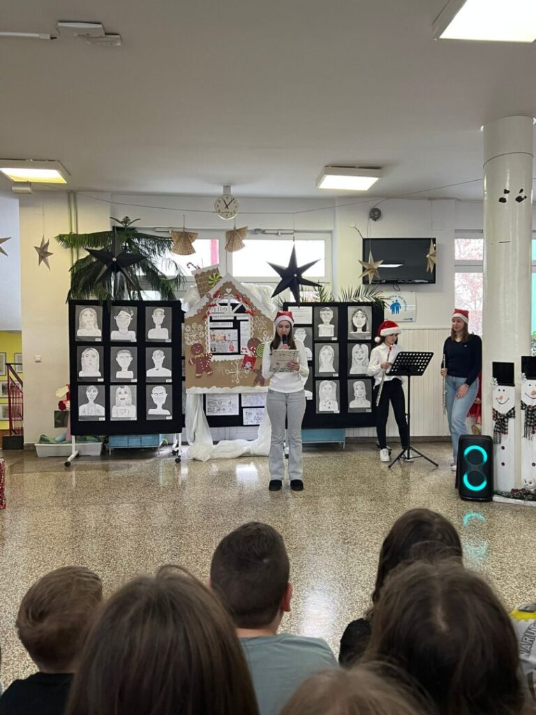 Program je započeo nastupom školskog pjevačkog zbora, a u glazbenom dijelu sudjelovale su i flautistice Marta i Mia koje su izvele skladbe „Jingle Bells“ i „We Wish You a Merry Christmas“. Dramski dio obogatili su učenici 2.b razreda igrokazom „Božićni darovi“ te učenice 3.a razreda recitacijom „Božićna čestitka“ koju su same uglazbile. Školski zbor izveo je i pjesmu „Winter Wonderland“.