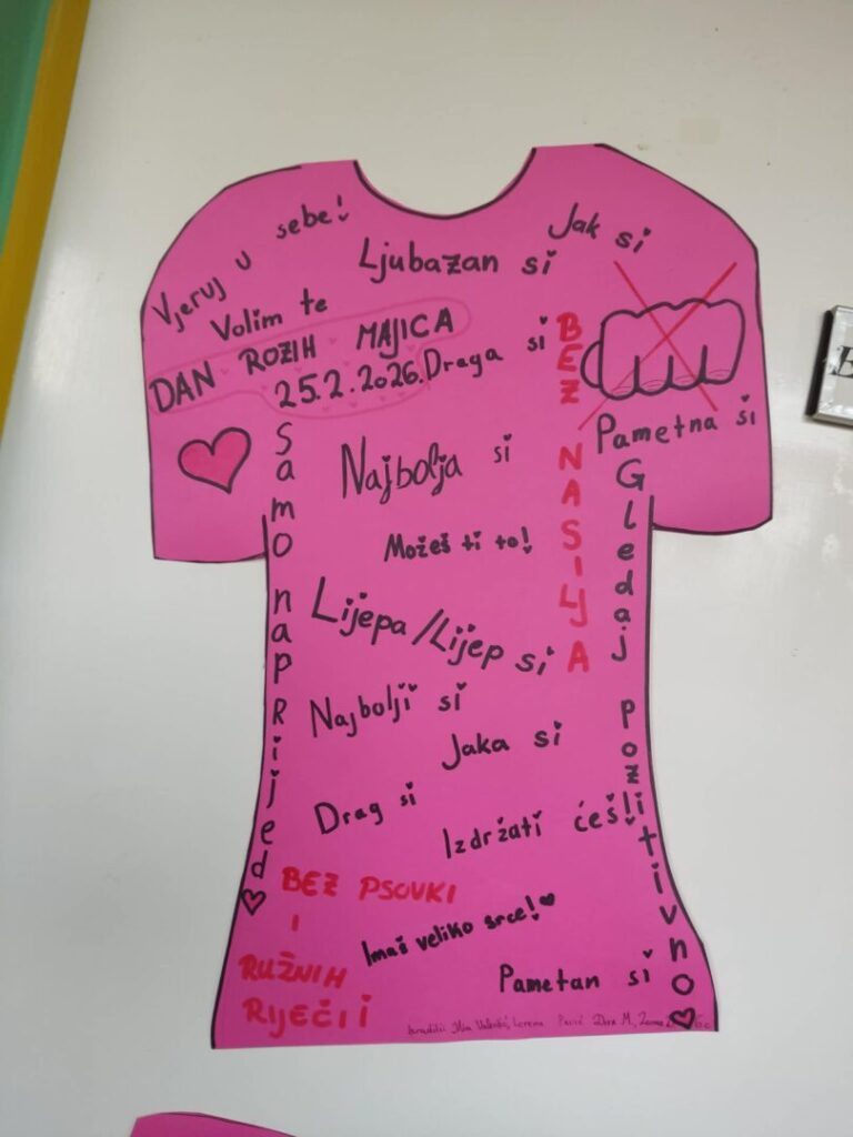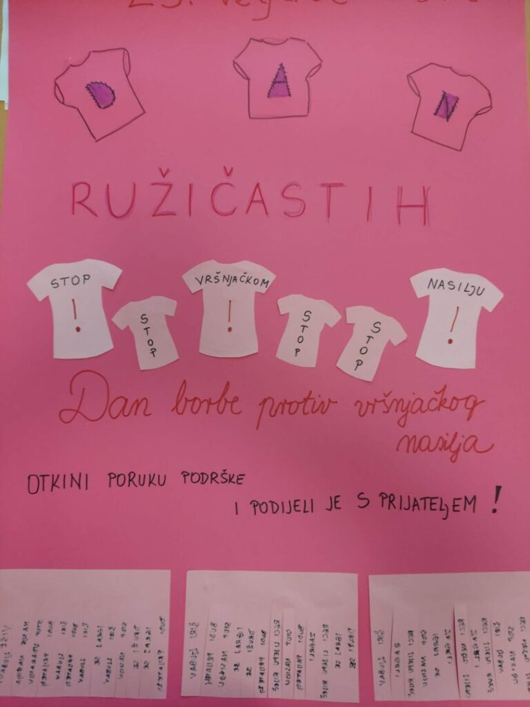 Dan ružičastih majica, međunarodno poznat kao Pink Shirt Day, program je prevencije vršnjačkog nasilja. U svijetu se obilježava od 2007. godine, zadnje srijede u veljači. Događaj koji je prethodio cijeloj ideji je zlostavljanje dječaka iz Kanade koji je u školu došao odjeven u ružičastu majicu kako bi bio potpora teško bolesnoj majci. Nedugo zatim su se dječakovi školski kolege solidarizirali i pojavili u školi u ružičastim majicama koje su time postale i simbolom ove inicijative. Isto su učinili učenici naše škole u znak podrške 25. veljače 2026. godine.