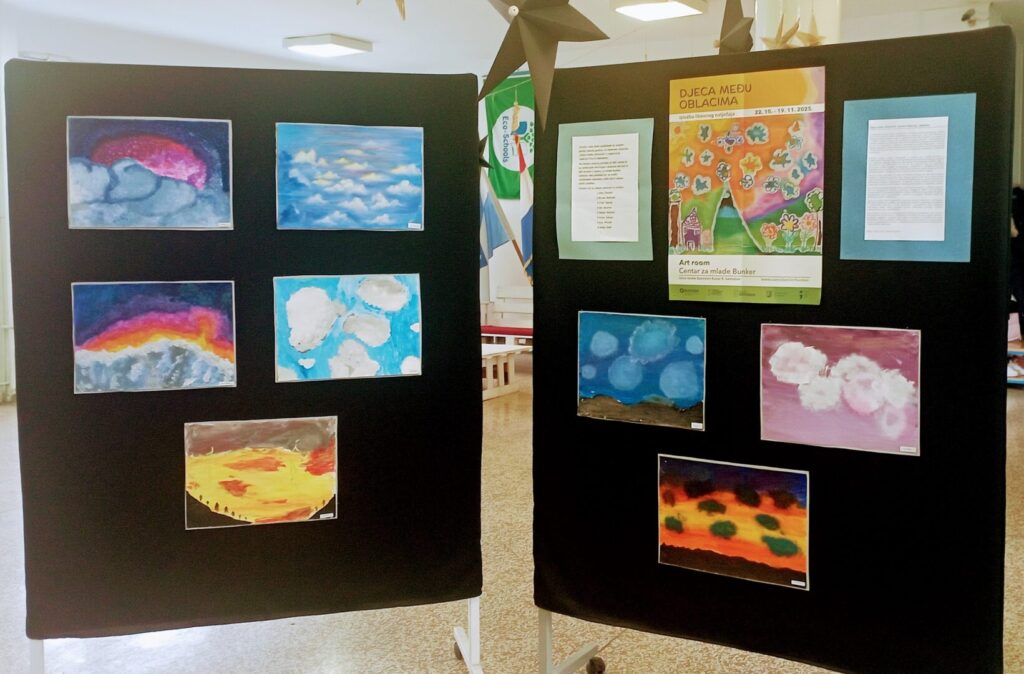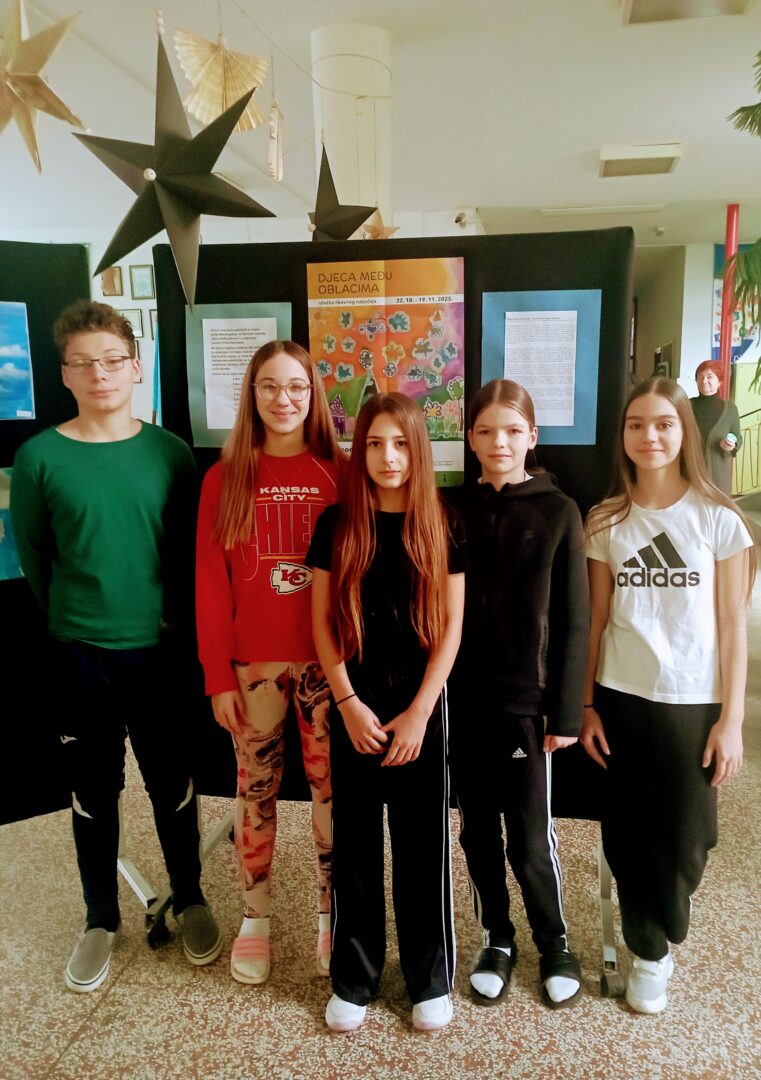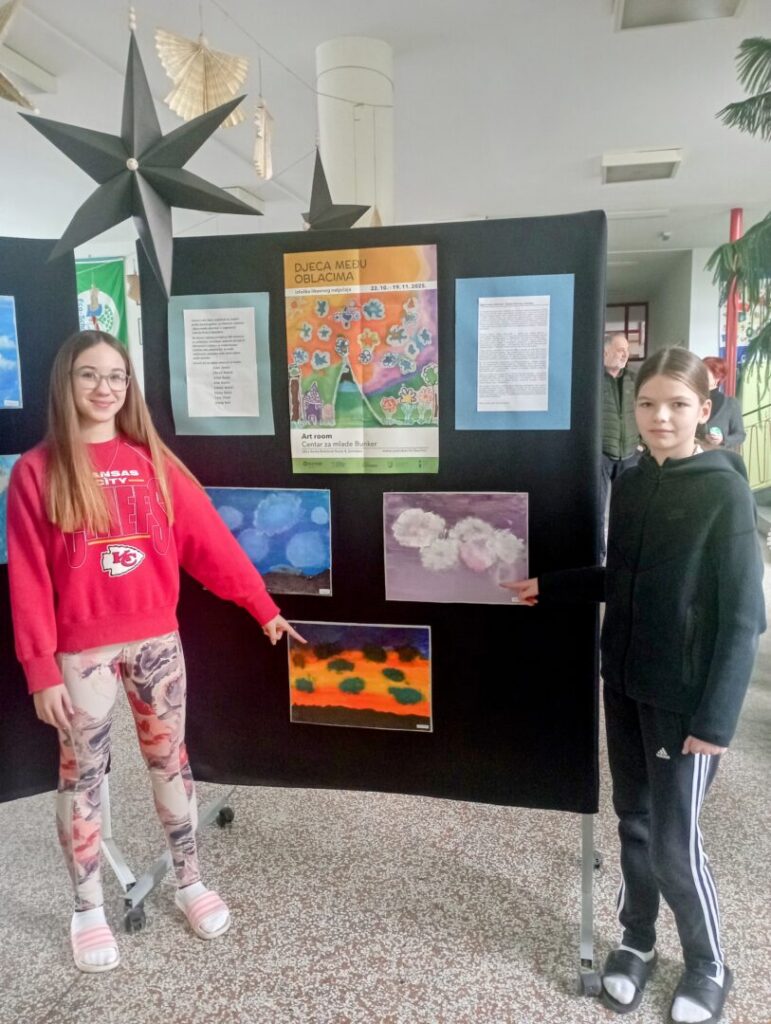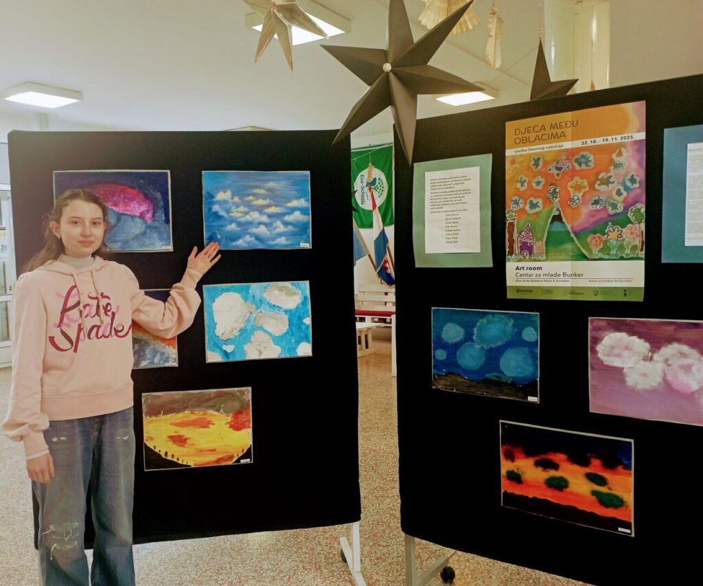 Učenici OŠ Ljudevita Gaja Nova Gradiška sudjelovali su krajem prošle nastavne godine u likovnom natječaju “Djeca među oblacima”, a u organizaciji Galerije “Prica” iz Samobora. Nakon pomnog odabira dječjih radova kojih je prispjelo ukupno 460, ponosno možemo reći kako je čak 8 radova učenika naše škole, a pod mentorstvom učiteljice Jasminke Roknić izloženo u Centru za mlade Bunker. Izložba je trajala od 22. listopada 2025. do 19. studenog 2025. godine. Nakon zatvaranja izložbe radovi su vraćeni školama kako bi i drugi mogli uživati u tajanstvenim, vatrenim, ružičastim, zlaćanim, maštovitim oblacima. Autori radova su: Ana Ćeranić, Bruna Bednaić, Fran Čančar, Ida Blazina, Nevia Čančar, Erina Žakula, Eva Pristaš i Josip Kalić.