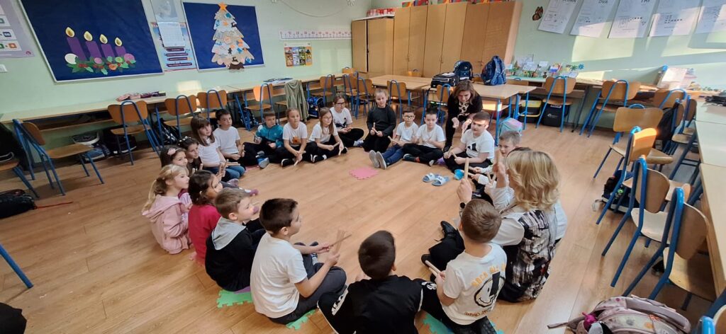 U utorak smo u 2.c razredu ugostili mamu naše učenice Lucije, profesoricu glazbene kulture Danijelu Šmuljić Matošević. Održala nam je jedan malo drukčiji sat glazbene kulture, koji je bio jako zabavan! Djeca su rado sudjelovala te uživala slušajući i pjevajući. Na početku sata poslušali smo već poznatu skladbu, koju smo odsvirali svojim ručicama, a onda naučili pjevati božićnu pjesmu Nebo daj oku. Shvatili smo kako sviranjem i pjevanjem možemo proizvesti sjajnu glazbu, kao da smo bili na koncertu.