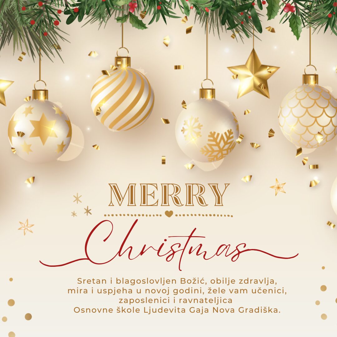 slijedi nam zasluženi zimski odmor. Slobodni ste od 24.12.2025., ponovo se vidimo 12.1.2026. Iskoristite ovo vrijeme za odmor, druženje s obitelji i prijateljima, uživajte u blagdanskom ozračju svoga doma i našega grada. Nemojte ni školu zaboraviti, posebno probleme koji su ostali neriješeni, primite se knjige tijekom dana pa će biti lakše u drugom polugodištu. Uglavnom, imate vremena za sve u narednim danima.