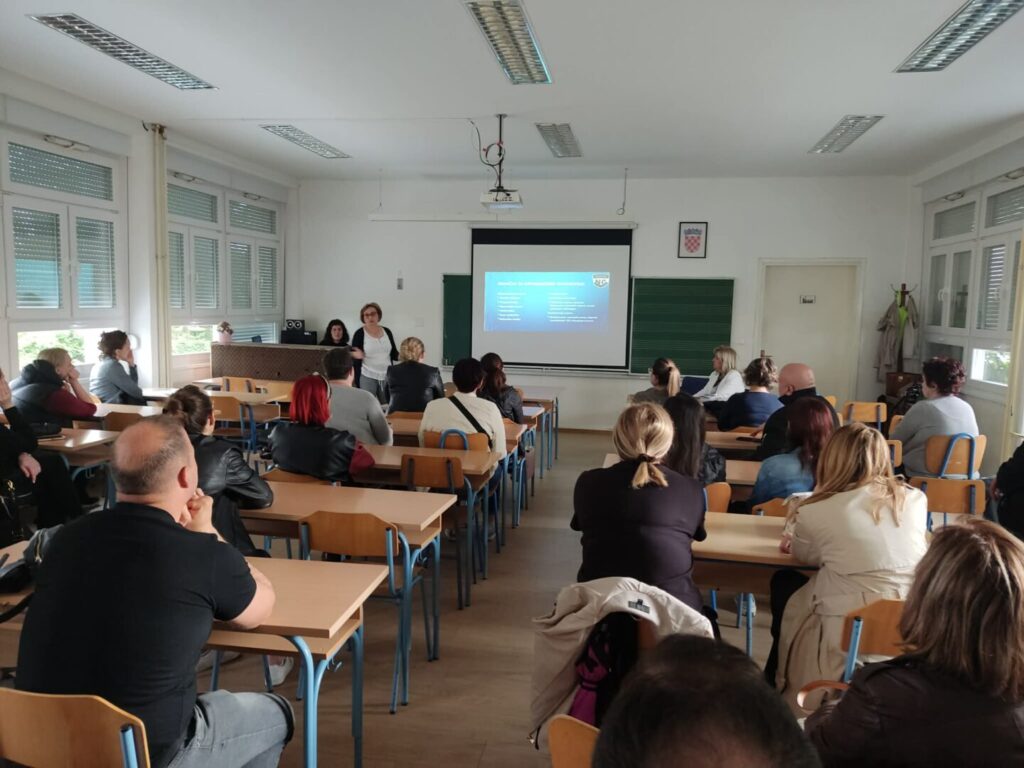 Roditeljski sastanak organiziran za roditelje osmaša imao je na dnevnom redu predstavljanje srednjih škola u našem gradu. Elektrotehničku i ekonomsku školu predstavila je pedagoginja Mira Linjaković, Gimnaziju pedagoginja Ljiljana Vidmar, a Industrijsko obrtničku školu psihologinja Majda Joha. Stručne suradnice srednjih škola govorile su o programima i smjerovima koji se u njihovim školama mogu upisati, uvjetima upisa i posebnostima škola. Roditelji su pažljivo slušali i zadovoljni dobivenim informacijama pošli svojim kućama. Slijedit će još jedan roditeljski sastanak na temu Postupci i uvjeti upisa u srednje škole koji će biti organiziran kada budu poznati rokovi upisa.