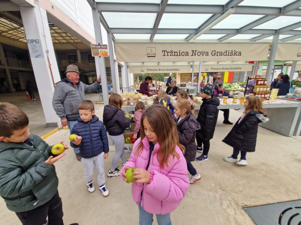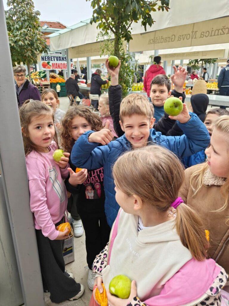Učenici 1.a i 1.b  razreda naše škole obilježili su Svjetski dan pješačenja odlaskom na gradsku tržnicu. Pješačenjem do tržnice učenici su imali priliku promatrati promjene u prirodi koje donosi jesen. Na tržnici su ih dočekali raznoliki mirisi i boje jesenskog voća i povrća. Učenici su imali priliku razgledati raznoliku ponudu domaćih plodova, prepoznati različite vrste te saznati više o njihovoj važnosti za zdravlje i pravilnu prehranu. Nakon posjeta tržnici, učenici su se veselo poigrali na dječjem igralištu i tako zaključili ovaj zanimljiv i poučan dan.