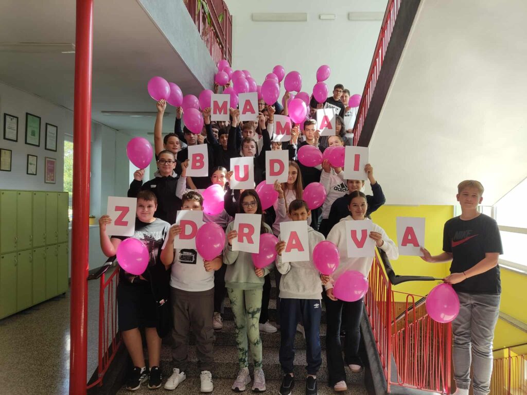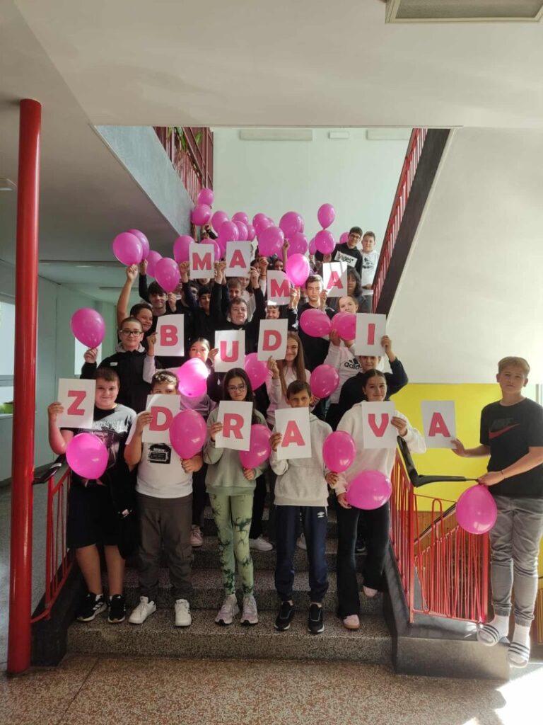 Udruga SVE za NJU, u listopadu, Međunarodnom mjesecu protiv raka dojke, organizira projekt “Mama, budi zdrava – Ružičasti listopad”, kako bi podigla svijest i odgovornost žena za vlastito zdravlje, posebno zdravlje dojki. Najveća želja majke još prije rođenja djeteta jest da bude zdravo. Djeca to isto žele poručiti svojim majkama kroz akcije koje se održavaju širom Hrvatske tijekom Ružičastog listopada. Podijeljeni su letci sa podsjetnicima majkama za obavljanje preventivnih pregleda. Učenici sedmih razreda naše škole poručili su svojim majkama i svim majkama: “Mama, budi zdrava!”