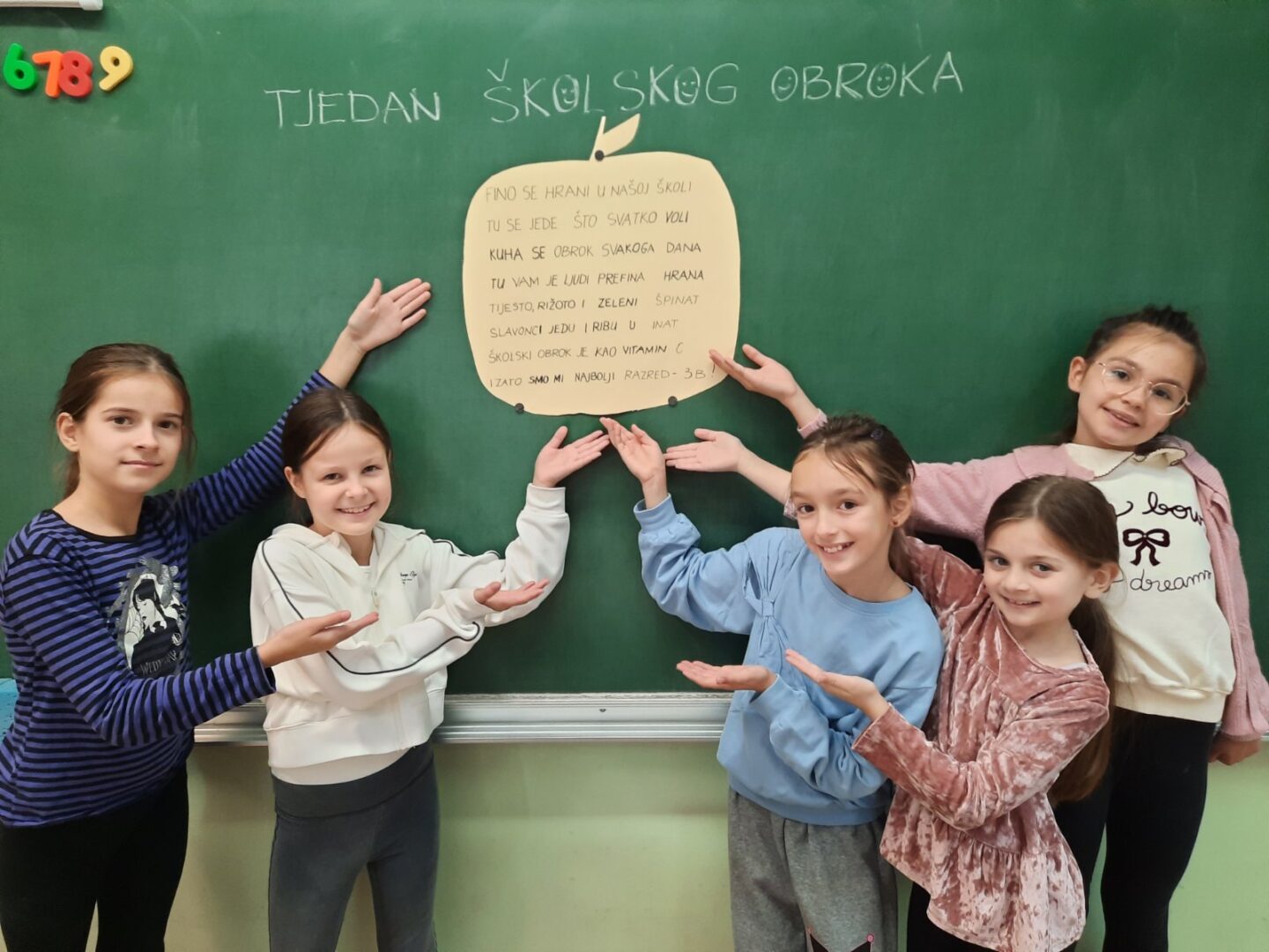 Već petu godinu obilježavamo Tjedan školskog doručka kako bismo djeci približili zdravu prehranu. Ovogodišnja tema tjedna bila je „Hranom oko svijeta“. Učenici su sa svojim učiteljima osmislili različite oblike obilježavanja ovog tjedna. Pripremali su zdrave obroke, sastavljali pjesmice, pjevali o zdravoj hrani, pisali kuharicu i još puno toga.